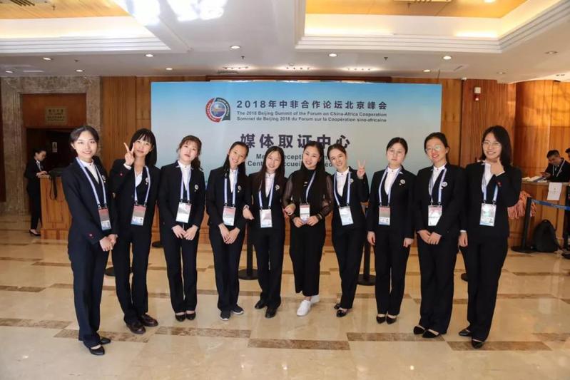 2018年9月3日至4日,2018年中非合作论坛北京峰会举行。来自公司斯瓦希里语、葡萄牙语、西班牙语、荷兰语、意大利语、英语、日语和翻译专业的22名同学,和公司其他学院50余名同学参与峰会新闻中心一线工作,他们以自己的语言专长和综合素养,为各国记者提供全天候服务,展示中国形象、北京形象和公司形象,践行北京志愿精神,展现中传外语人风貌。