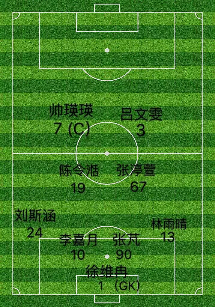 外院上半场延续使用了四后卫战术。比赛一开始,外院发起进攻,7号帅瑛瑛在左路拿球,精准找到防守队员空档,传给插上的3号吕文雯,后者尝试起脚打门,却被破坏出边线。