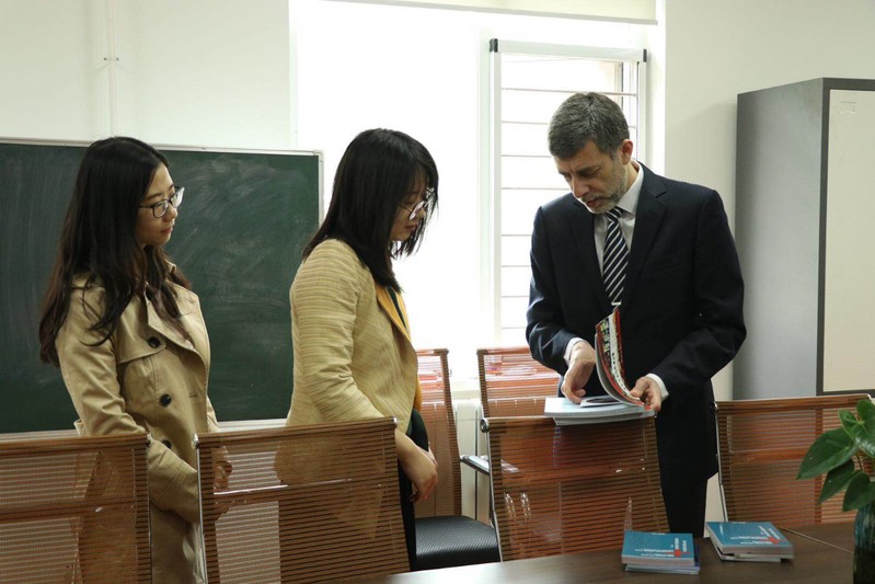 随后,葡萄牙语教师高静然向拉莫斯介绍了葡萄牙语中心近年来的发展情况,举办的与葡萄牙语教学、葡萄牙历史文化等领域的多项活动以及葡萄牙语师生在葡语领域中取得的各项成绩。