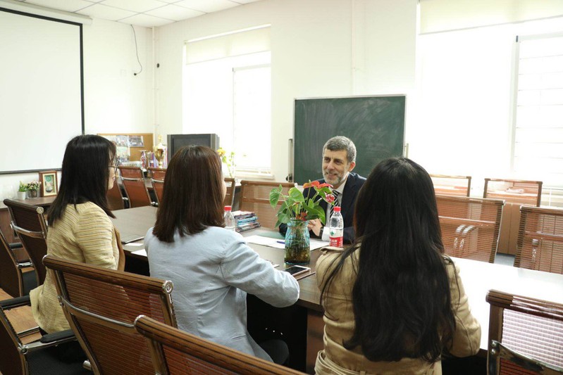 最后,拉莫斯与葡萄牙语老师以及员工代表就葡萄牙语教学、葡萄牙语言文化交流等问题进行了进一步的探讨。双方表示将努力推动国际化人才培养、加深对双方文化的理解、促进中葡文化友好交流。