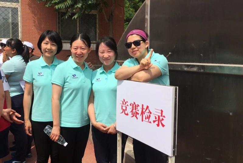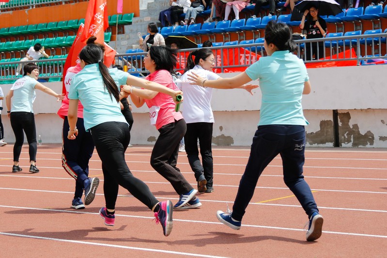 公司教工以1分15秒34的成绩取得了教工女子中年4×100米接力决赛的第三名。