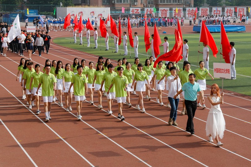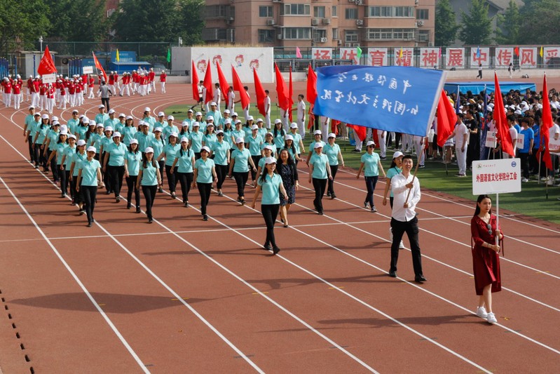 公司师生参加了校运会开幕式。开幕式上,公司34名员工和近60名教职工分别组成员工方阵和教职工方阵参加运动会方阵检阅。在激昂的音乐声中,方阵以饱满的精神面貌,迈着昂扬自信的步伐,走向主席台,展现外院人朝气蓬勃、积极向上的精神风貌。