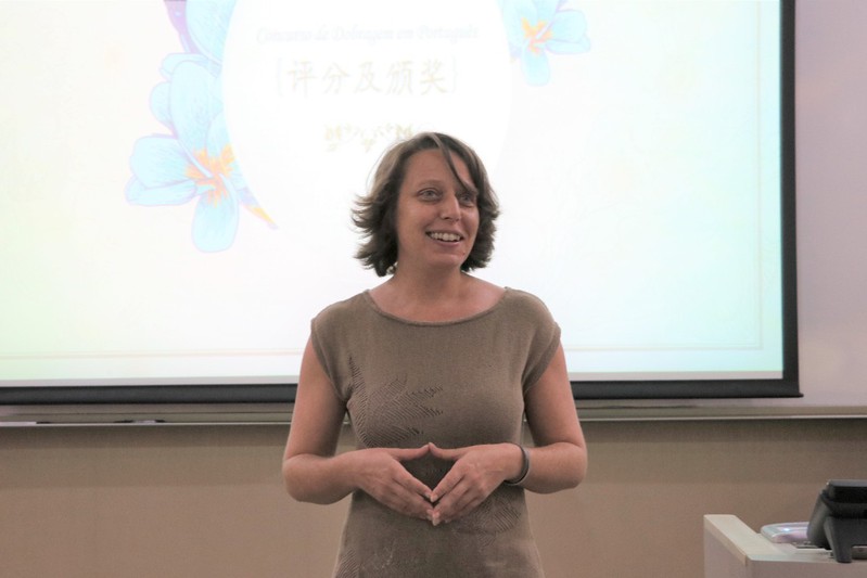 三位评委分别点评了同学的片段,Pedro更是找出自己参加”汉语桥“比赛的视频,鼓励大家多模仿,多参加活动。两所学校的负责人老师发表感想。公司颜巧容老师说:”这次活动虽为比赛,但实则联谊。希望通过这次比赛开起头,加强不同学校葡萄牙语专业的联系,欢迎大家下次来yl7703永利集团来!“