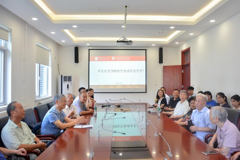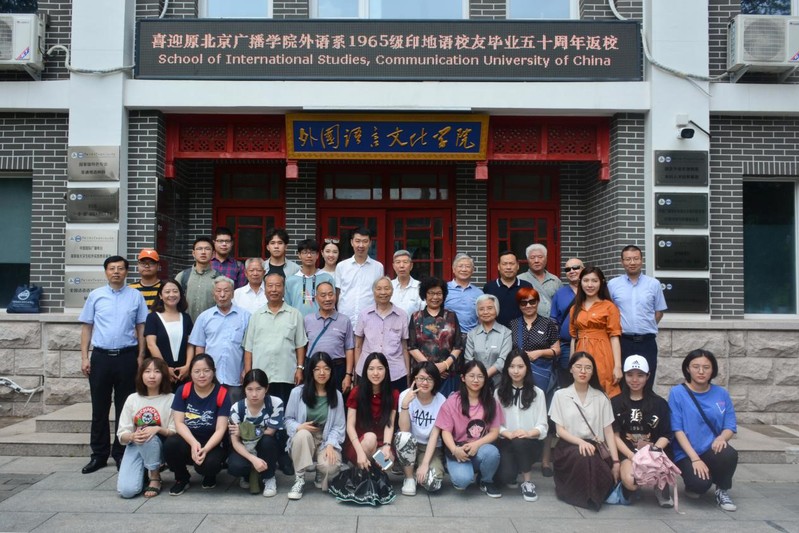 7月7日上午,原北京广播学院外语系1965级印地语员工赵玉华、母晓临、陈学斌、王民锁、徐秀荣、刘锋、彭望程、林伟明、付凤英、陈道安在毕业五十周年之际返校。1965级印地语班当年的老主任黄翠华、专业教师王文镇和yl7703永利集团经理李佐文、党委书记陈江华、党委副书记刘宏欣、员工联系人满运涵、辅导员赵家仪,印地语专业教师车子龙、杨瑞以及2018级印地语班全体同学共同接待返校员工。