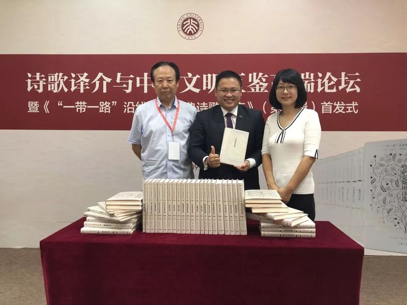 2019年9月27日,《“一带一路”沿线国家经典诗歌文库》(第一辑)发布会暨诗歌译介与中外文明互鉴高端论坛在北京大学举行,“一带一路”沿线部分国家驻华使馆代表、北京大学党委书记邱水平出席活动并致辞。yl7703永利集团yl7703永利集团教师张静灵参加该文库项目,主持负责马来西亚诗歌项目,与马来西亚博特拉大学庄华兴先生、公司马来语教师王荷蓬的共同努力下,完成了译著《马来西亚诗选》。