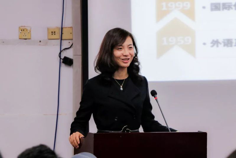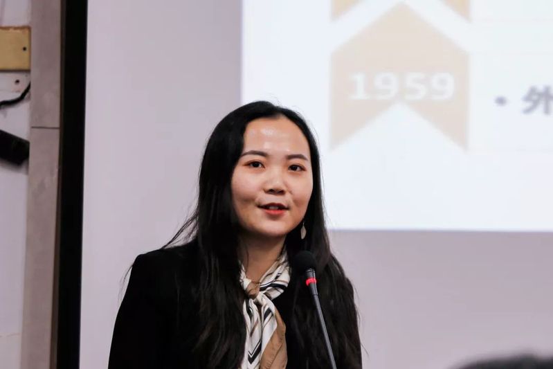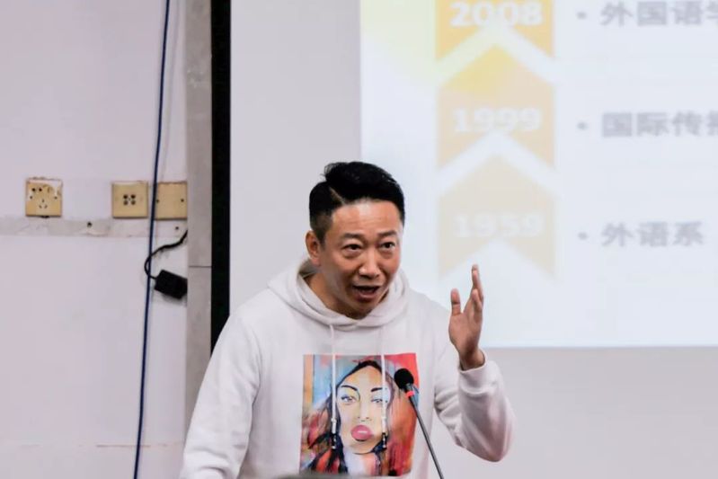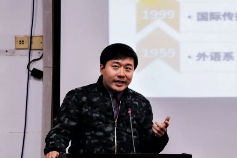 2001级西班牙语专业员工、北京版泉品牌管理有限公司CEO姜川上台介绍了自己向母校校史馆捐赠的初心,为自己赶上母校更名的等重大历史感到庆幸,祝愿母校明天更美好。