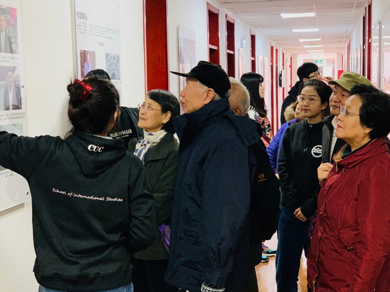 上午8点半,公司返校员工陆续到达布置一新的学院33号楼。双语格言贴、历史照片墙、高校风景照、各国国旗墙、多语种校歌MV等体现着公司的“精外语 通传媒 强能力”的育人特色。员工们深情握手相拥,激动心情溢于言表。公司“言传”多语种讲解团队成员于昌灵、林子惠、吴羽非、宋若萱、嵇梓凡、郑依滢、吕文屹、常宁、陈建菲、阎自怡、张凡琳、李怡辉等12名同学接待回家员工并作院史院情讲解,老员工们还在“言传”同学陪同下,参观了校史馆、传媒博物馆和校园。