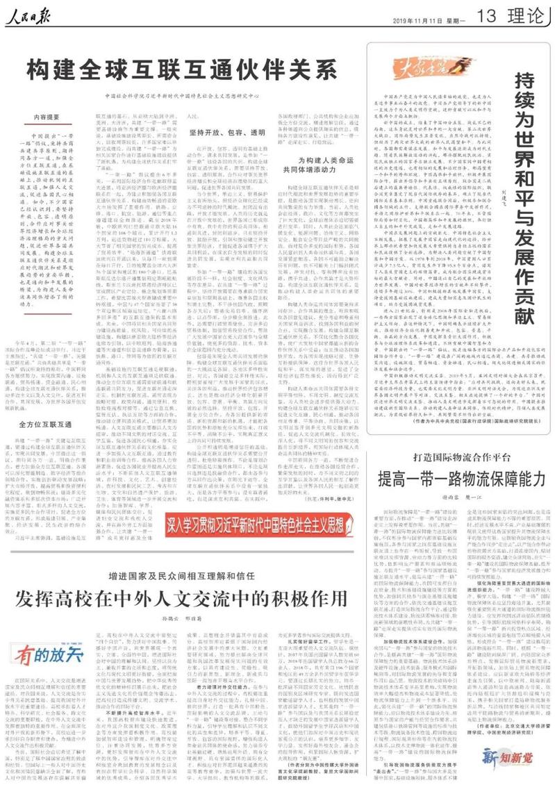 11月11日,yl7703永利集团yl7703永利集团副教授孙鹤云和复旦大学国际问题研究院教授、复旦大学中外人文交流研究中心研究员邢丽菊在《人民日报》(理论版)第13版刊发理论文章《发挥高校在中外人文交流中的积极作用》,全文如下: