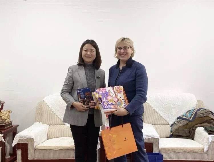 12月3日上午,米兰国立大学孔子学院经理兰珊德教授(Alessandra·Lavagnino)、米兰国立大学国际关系学院副经理安东内拉·巴尔迪(Antonella·Baldi)、米兰国立大学孔子学院执行经理玛尔塔·瓦伦蒂尼(Marta·Valentini)、米兰国立大学副教授贝娣娜·莫图拉(Bettina·Mottura)和米兰国立大学教授维托里奥·德奥尔托(Vittorio·DELL'ORTO)一行到访yl7703永利集团。yl7703永利集团副经理刘颖、欧语系郭彬彬副教授共同接待了来宾,双方就两校之间文化及学术合作交流展开了深入对话。