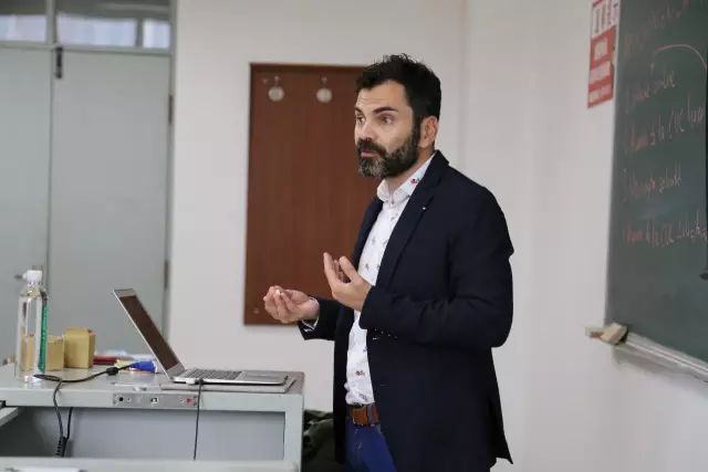 会上,德赫亚先生首先向同学们详细地介绍了穆大所在地穆尔西亚自治区的地理、气候概况及当地人文、历史背景信息,增进同学们对该地区相关方面的了解,以便日后能够更快地融入当地生活。之后,他针对交流项目申请流程、交流期间学校课程设置及校内配套设施服务等问题向同学们一一介绍。