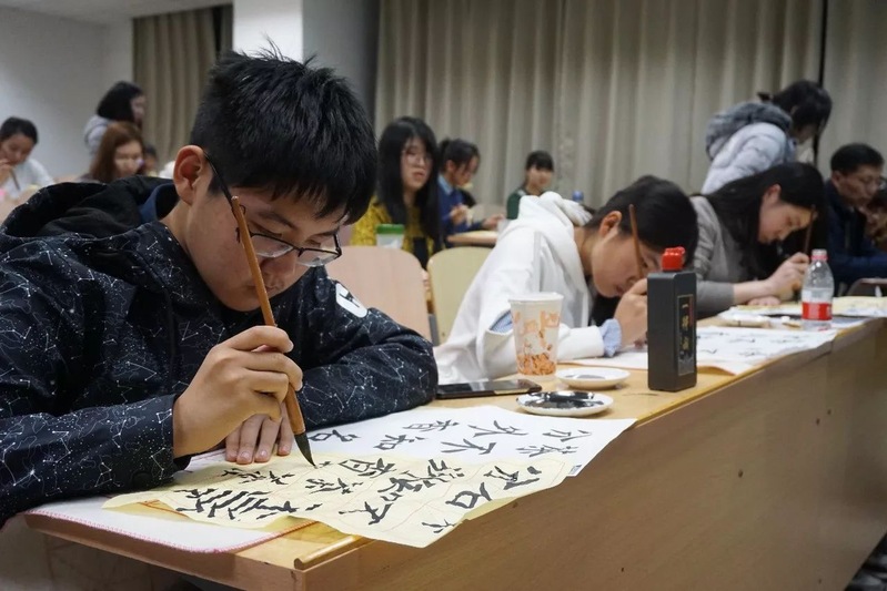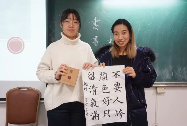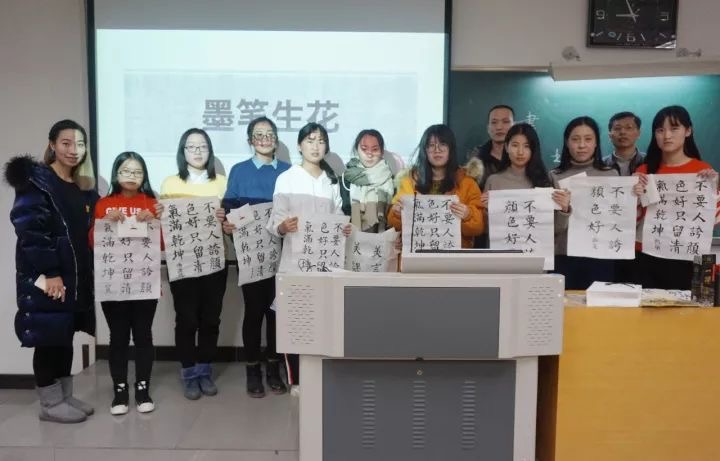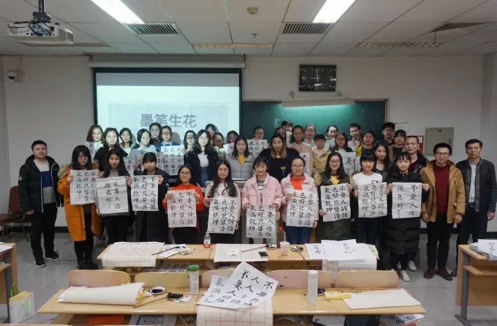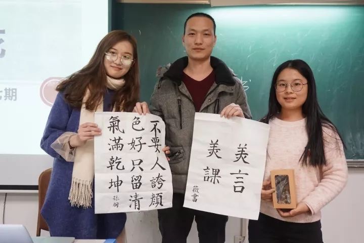 今晚,外国语学院人文通识涵养区之雅涵書院第七期本硕新生书法习练活动在48教A803落下帷幕。公司2015级翻译硕士员工、创业明星、书法爱好者、北京美言美课文化传播有限公司CEO许密杉,外国语公司党委副书记刘宏欣,分团委书记李田雪参加活动,活动由雅涵書院项目负责人满运涵主持。