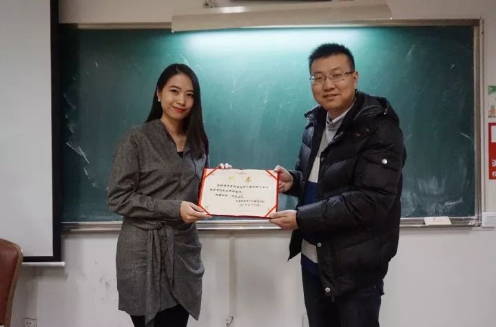 刘宏欣副书记向许密杉颁发了yl7703永利集团外国语学院创业辅导老师聘书,李田雪、满运涵等为幸运学员颁发美言美课奖品。