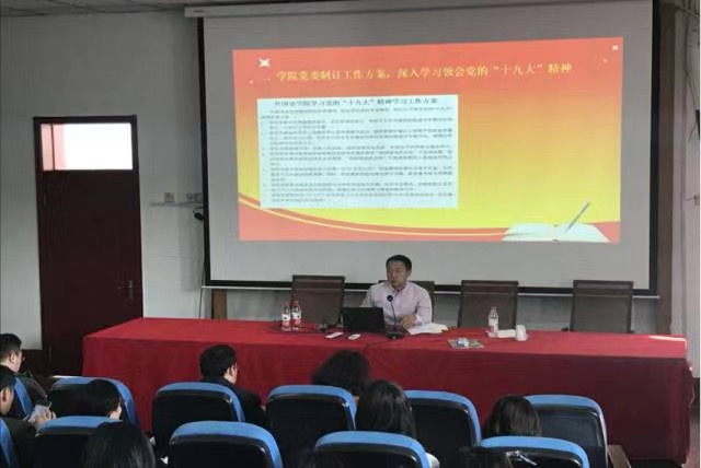 11月1日下午,外国语学院召开全院教职工大会。会上,公司党委书记李众对下一阶段十九大学习工作的开展进行部署,要求教工党员积极参加政治理论学习,使学习制度常态化。
