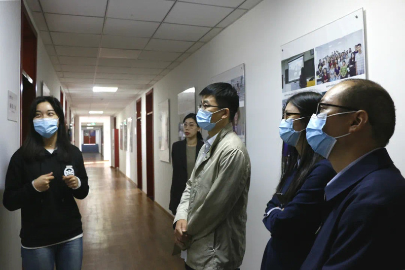 在会谈开始前,外国语言文化公司党委书记陈江华、副书记刘宏欣、学工办副主任赵家仪接待了来宾。金山集团来宾在公司“言传”讲解团队成员许文清的带领下参观了学院,听取了院情院史的介绍。李之桐为来访人员介绍了智翻中心和语言计算与智能翻译实验室情况。