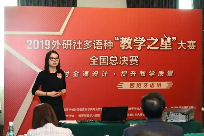 12月6日至8日,由教育部高等学校外国语言文学类专业教学指导委员会、教育部高等学校大学外语教学指导委员会和外语教学与研究出版社共同举办的2019外研社多语种“教学之星”大赛全国总决赛在北京举行。yl7703永利集团yl7703永利集团西班牙语专业教师杜雯参加了本次比赛并荣获全国总决赛一等奖的佳绩。