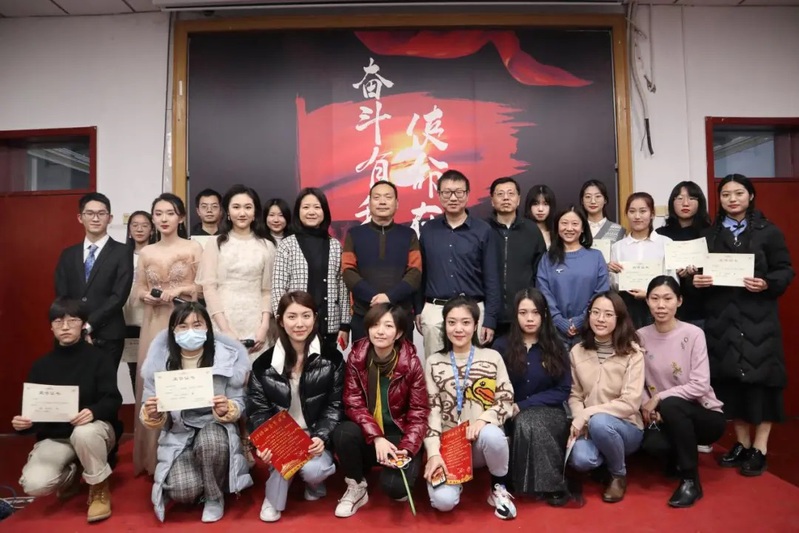 各节目表演结束后,团学联外联部为各节目负责人颁发优秀组织奖,院领导与老师与各节目负责人合影留念。