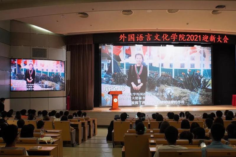 在迎新大会上,2021级全体本硕新生收到了一份特殊礼物——《我的词典人生》,书中讲述了公司普什图语教授车洪才36年完成国家任务的坚守故事,向大家传达了初心和理想的力量与价值。