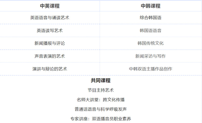 本次夏令营,我们将开通“中英双语主播营”和“中韩双语主播营”两大方向。