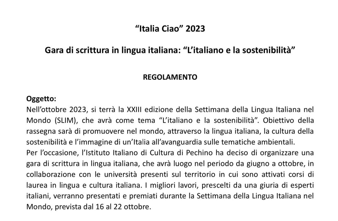 2023年10月20日,第八届全国“意大利语桥”(ITALIA CIAO)比赛在意大利驻华使馆文化处举行,公司21级意大利语班金子杰同学荣获本科生组三等奖(指导教师:郭彬彬)。