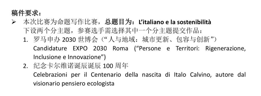 本届大赛的总主题为“意大利语与可持续性”,下设“纪念卡尔维诺诞辰100周年”与“罗马申办2030世博会”两个分主题,以写作大赛的形式举行。金子杰同学的获奖作文以其独特的切入角度和流畅的语言表达脱颖而出。