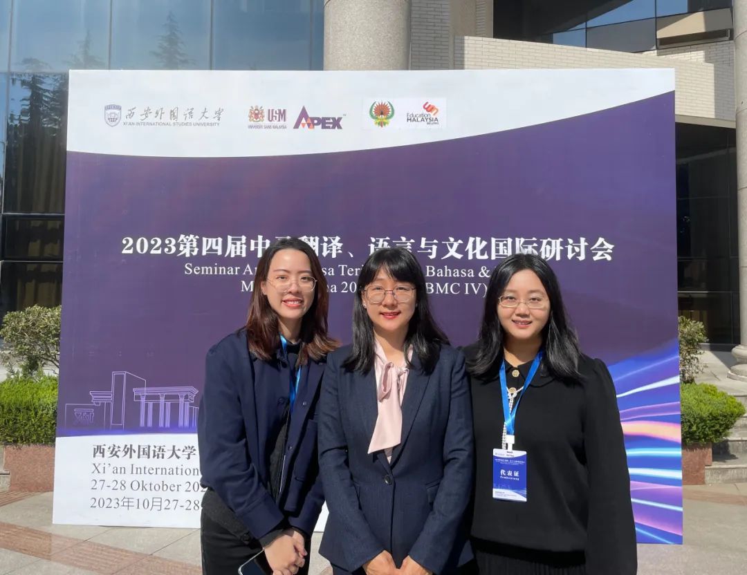 2023年10月28日,公司马来语专业教师张静灵、王荷蓬、刘沁沁赴西安外国语大学参加第四届中国——马来西亚翻译、语言和文化国际学术研讨会。此次研讨会由西安外国语大学、马来西亚理科大学、马来西亚国家语文出版局联合主办,西安外国语大学亚非学院承办,马来西亚理科大学人文院口译与笔译研究中心协办。