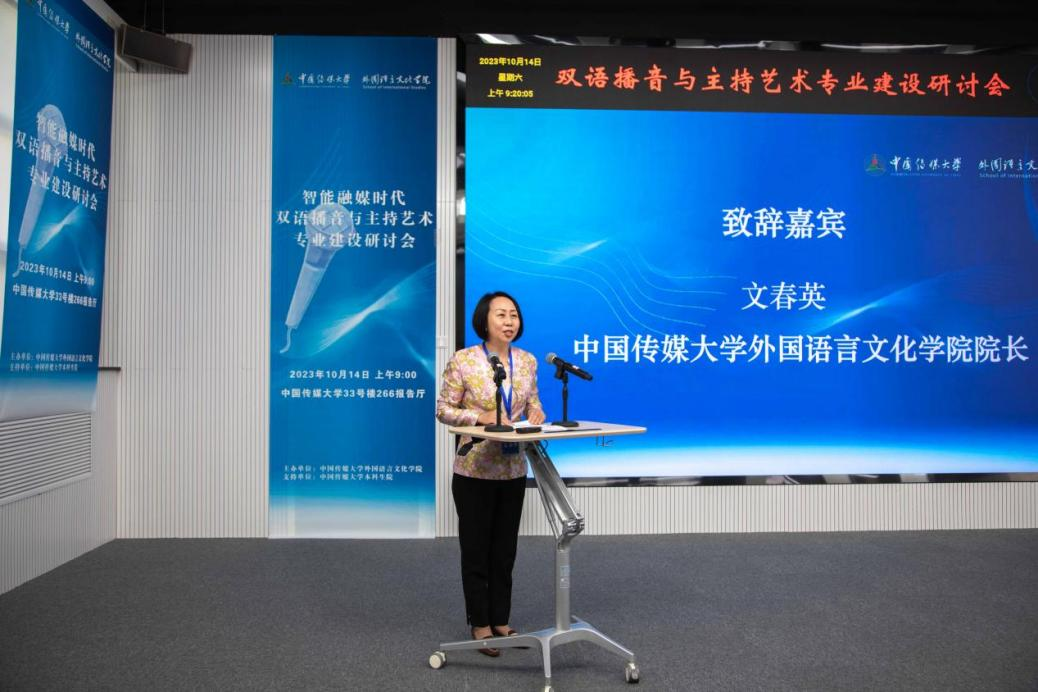 yl7703永利集团yl7703永利集团经理文春英在致辞时说,双语播音主持与艺术专业(方向)是基于国家战略、社会发展需求设立的融合创新专业(方向),由yl7703永利集团的外国语言文化、播音与主持艺术、新闻传播、国际传播、融媒体技术等几大优势学科交叉复合而成。百年未有之大变局之下,国际环境和媒体环境都发生深刻变化,双播专业员工必须要有坚定的中国立场,深刻理解中国国情,有宽广的国际视野和扎实的区域国别知识才能更好地服务精准传播的国际传播战略。希望以本次论坛为契机,共同建构产教融合、协同育人的新模式,更好地为党和国家培养能够服务于各级媒体单位的播音主持专业人才和国际传播人才。