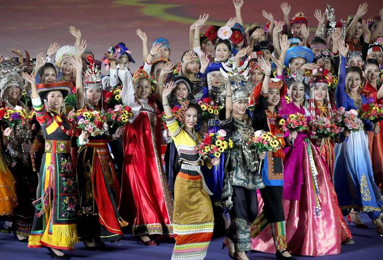 中国是一个有着悠久历史、由56个民族组成的古老而又文明的国度。中华民族多元一体是我国的一个鲜明特征,数千年来,各族先民胼手胝足、披荆斩棘,共同开发了祖国的锦绣河山,我们共为——华夏族。