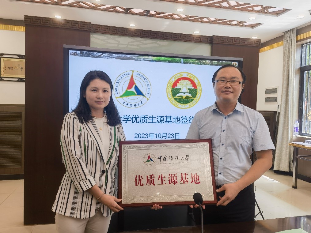 宣讲后,郑柳依老师代表学校招生处与广东广雅中学签署了优质生源基地培养协议,并进行了授牌仪式。