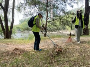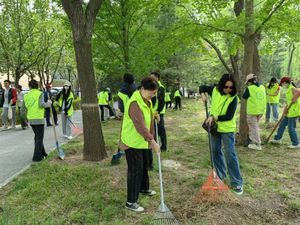 英语系教工党支部积极响应总书记的号召,发起组织了师生履“植”尽责党建活动,学术硕士党支部、英语专业本科生党支部和2024英语班的师生党员等积极响应。4月20日下午,28位师生利用周末时间来到东城区柳荫公园进行树木养护。一周前的12-13日,北京遭遇罕见极端大风天气,公园的草地上落满了被大风刮断的树枝。老师和同学们分成两组,一组用耙子清理枯枝落叶,一组用铁锹为树木开挖围堰。18日刚下过一场春雨,土壤十分湿润,顺应天时及时养护,师生们干劲十足,沿着湖岸道路两边清理地面和开挖围堰推进得很快,工作效率得到园方工作人员的高度评价。