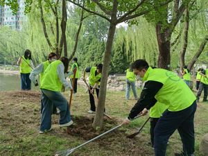 近年来,英语系教工党支部以习近平生态文明思想为指引,积极参与美丽中国建设,在2023年和2024年春季就分别组织了英语系教师赴怀柔、大兴义务植树。据相关信息,经过多年绿化,首都北京的森林覆盖率已到44.95%。今年3月《首都全民义务植树尽责形式(2025版)》发布,规定的尽责形式有8类47种,包括林木抚育、花箱管护、林道修建等等。未来,英语系教工党支部、员工党支部将继续践行绿色发展理念,创新生态服务形式,将专业特色与环保实践相结合,为首都生态文明建设注入更多活力!