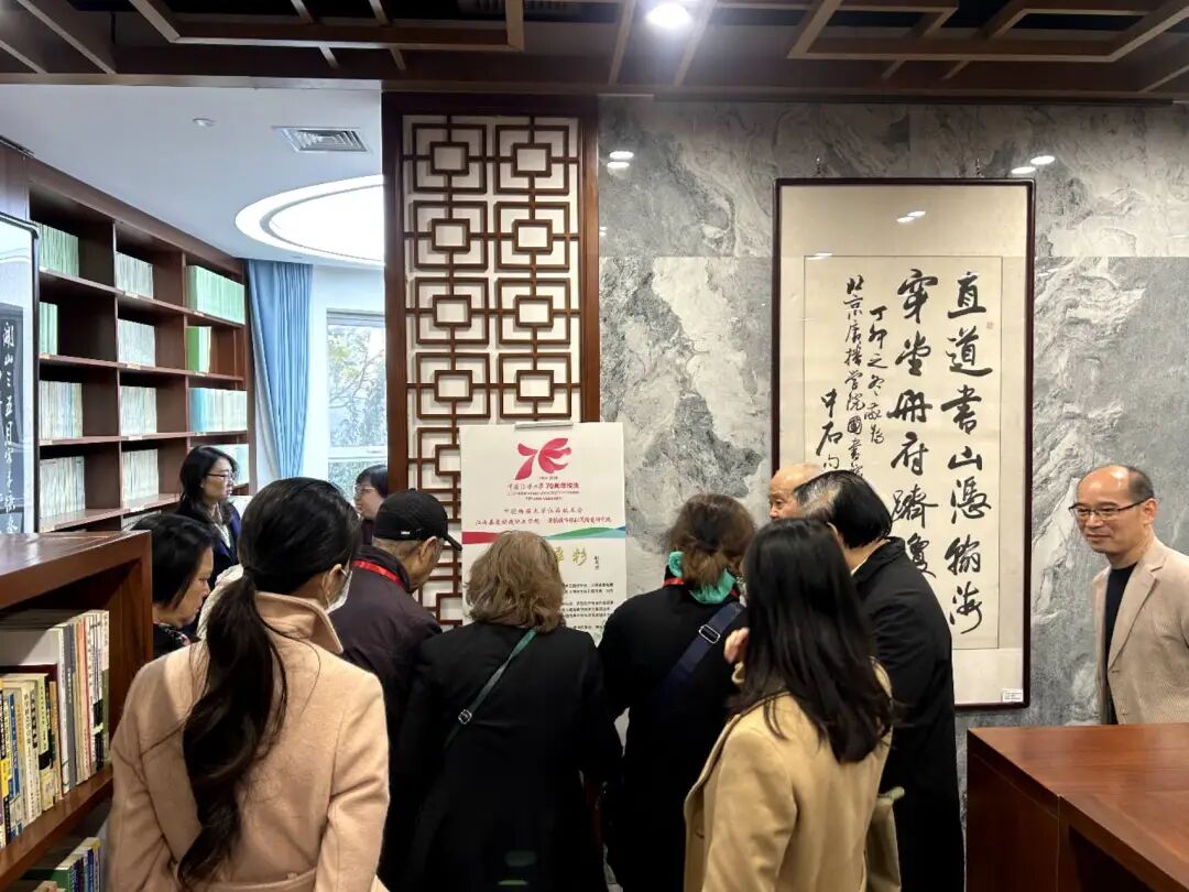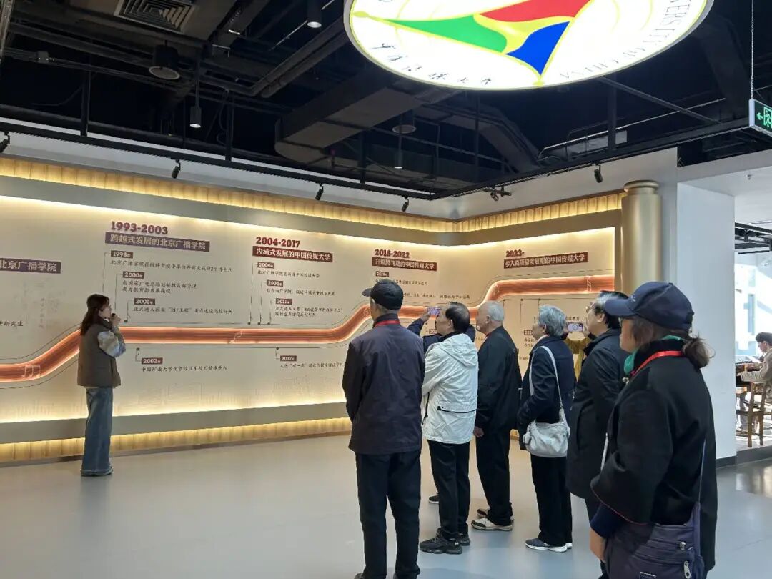随后,在学校员工办公室和学院师生的陪同下,员工们开启了校园寻访之旅,先后参观了校史馆、传媒博物馆、图书馆、梧桐书屋、教学楼等地,每一处都留下了他们探寻的足迹与深切的感慨。