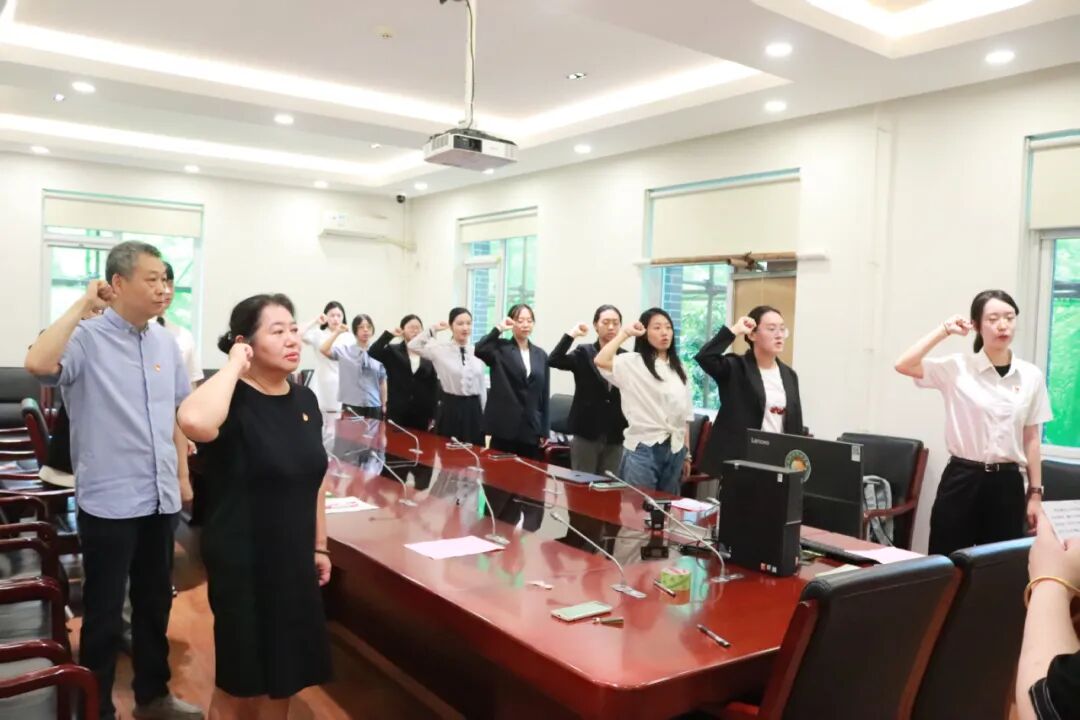 为进一步筑牢党员思想根基,增强新发展党员的荣誉感、使命感与责任感,2025年7月8日,外国语言文化公司党委在33号楼206举行了2025年春季学期新发展党员入党宣誓仪式。公司党委书记李烨辉、党委副书记刘娇、组织员郑维林,以及各员工党支部书记和10名预备党员参加了本次入党宣誓仪式。