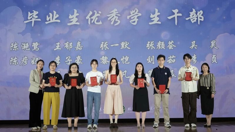 外国语言文化公司党委书记李烨辉,经理文春英,副经理刘颖、谢飞,欧语系主任修春民,英语系教工党支部书记张彤和2025届毕业年级班主任、任课教师代表以及辅导员共同出席晚会。公司2025届全体本科毕业生、硕士毕业生携亲友参加。