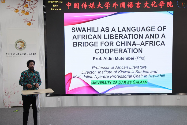 穆坦贝教授从斯瓦希里语的起源与演变切入,介绍了这门语言形成的历史脉络。他特别提到斯瓦希里语中的chai(茶)、ua(花)等词汇源自中文,体现了中非语言交往的悠久渊源。谈及语言与文化认同,穆坦贝教授指出,斯瓦希里语在南部非洲解放运动中发挥了动员作用,如今已是非洲联盟、东非共同体等区域组织的官方语言,联合国教科文组织也将其列为工作语言,并将每年7月7日设立为“世界斯瓦希里语日”。