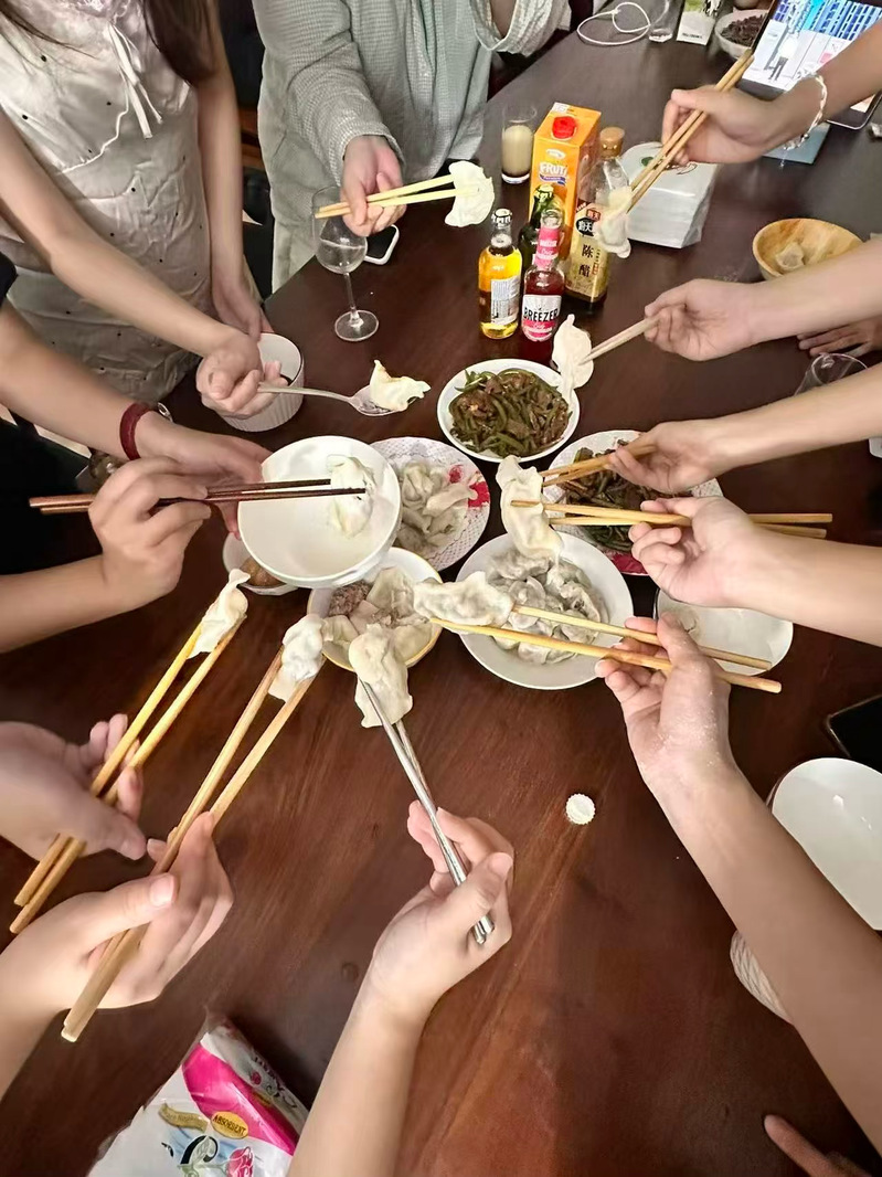 这个二月,最深刻的记忆无疑是在夏天的“年夜饭”。在达累斯萨拉姆,我们经历了人生中第一个没有雪花、没有厚重羽绒服的春节。虽然身处异乡,但中传学子骨子里的仪式感绝不能丢。我们和来自北外、天外的同学一起共享了一顿难忘的“年夜饭”。为了这顿年夜饭,大家提前几天就开始在达市的各个超市“寻宝”,准备春节必备的饺子。当锅里升腾起饺子的香气时,所有人的思绪都瞬间飞回了万里之外的家乡。同时,我们也打开了春晚,虽然网络信号偶尔卡顿,但大家围坐在一起,吃着自己亲手包的饺子,这种集体荣誉感和归属感达到了顶峰。这个二月,我们在达市的阳光下,把思念化作了味蕾上的满足,把中国年的种子,撒在了印度洋的海风里。